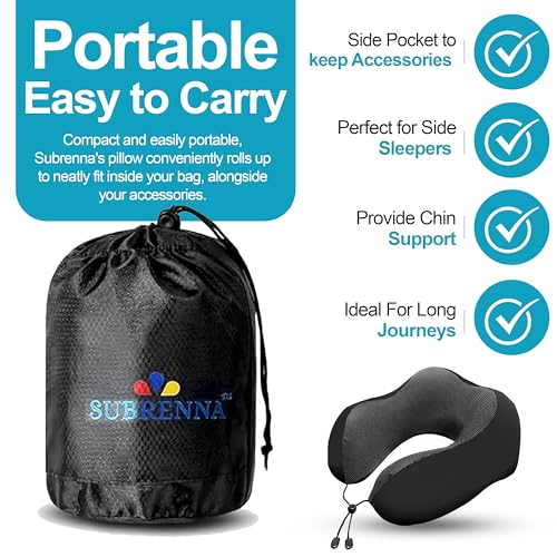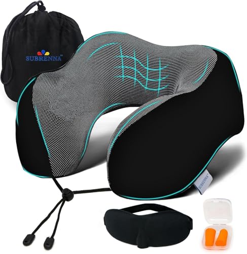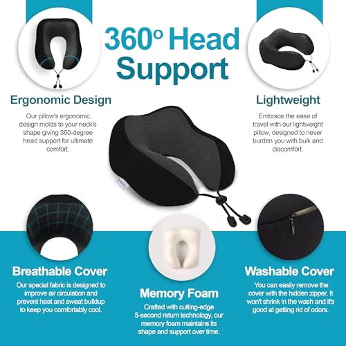 Adjustable Travel Pillow for Neck Support & Comfort, Lightweight Memory Foam Travel Neck Pillow for Sleeping – Washable & Breathable Plane Pillow for Traveling with Eyemask, Earplug & Carry Bag