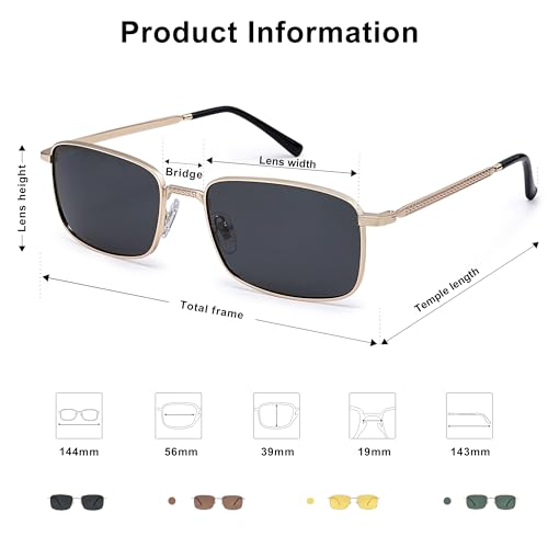SOJOS Retro Vintage Rectangle Polarized Sunglasses Mens Womens Classic UV400 Metal Sunnies SJ1215